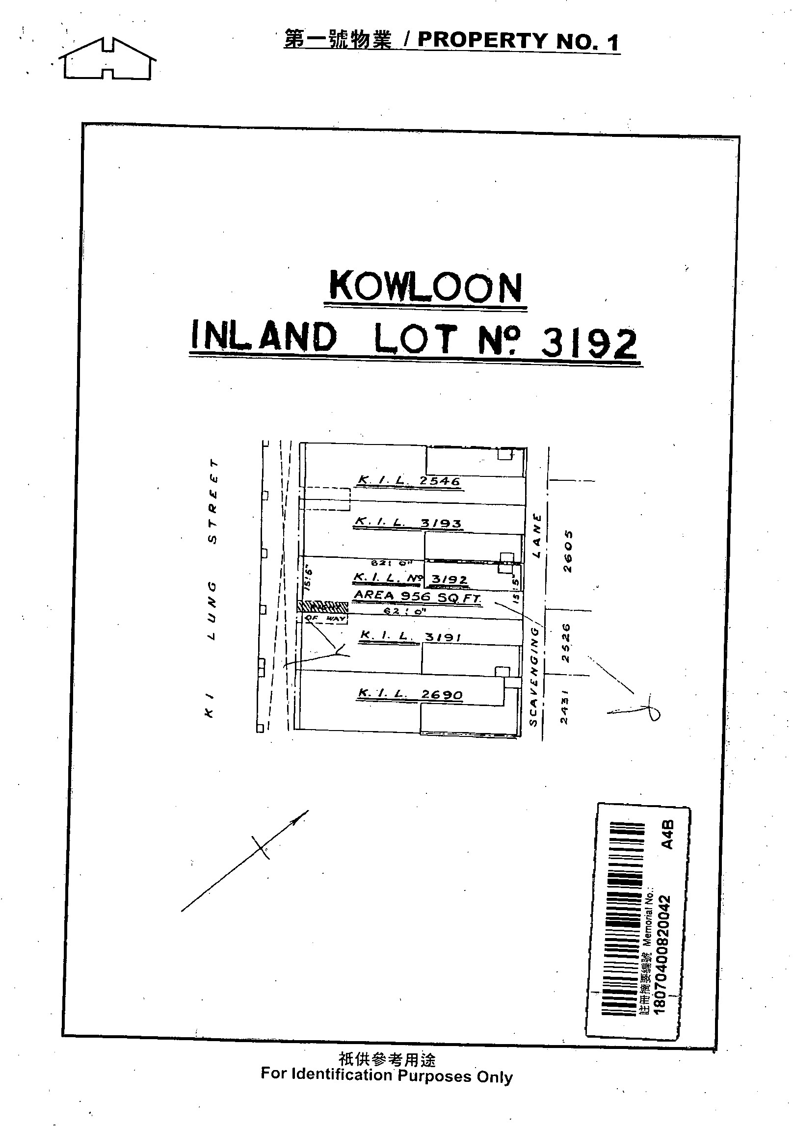KOWLOON INLAND LOT NO.3192 (SITE AREA APPROX. 956 SQ. FT.) NO.26 KI LUNG STREET KOWLOON
